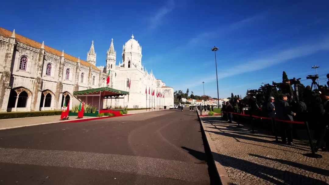 下午3点15分,葡萄牙总统德索萨在帝国广场为习近平举行欢迎仪式。