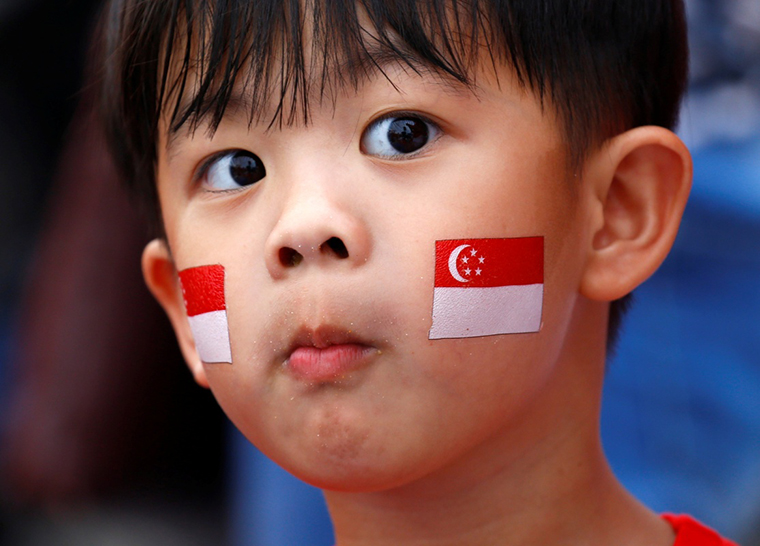 8月9日,一名男孩在新加坡参加国庆庆典。