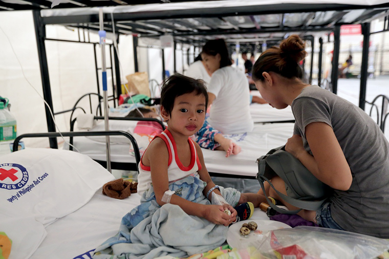 8月13日,患者们在菲律宾甲米地省一处登革热应急医疗站接受治疗。