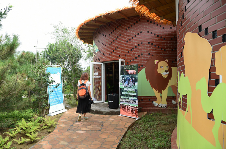 8月13日,游客在位于中非联合展园中的中非共和国展区参观。
