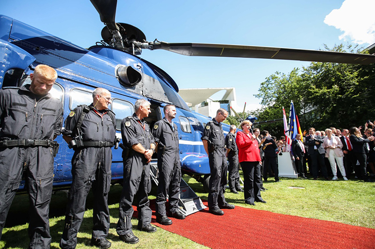 8月18日,在德国首都柏林,德国总理默克尔在开放日活动上讲话。