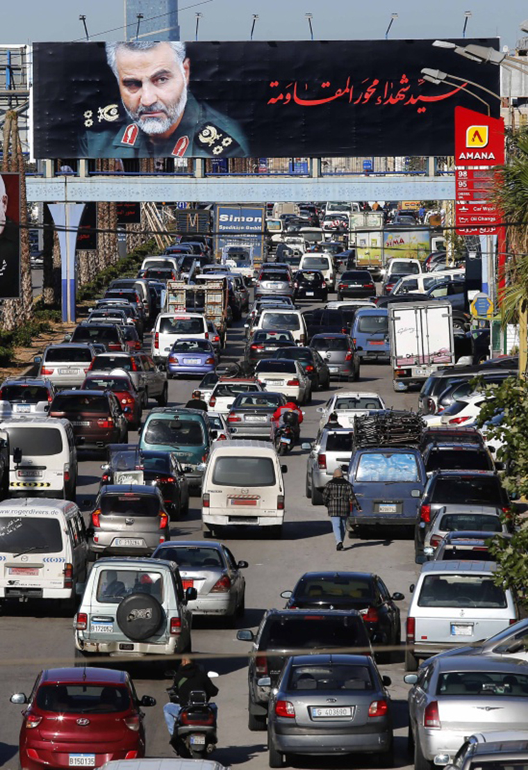 这是1月6日在黎巴嫩贝鲁特街头拍摄的苏莱曼尼肖像。