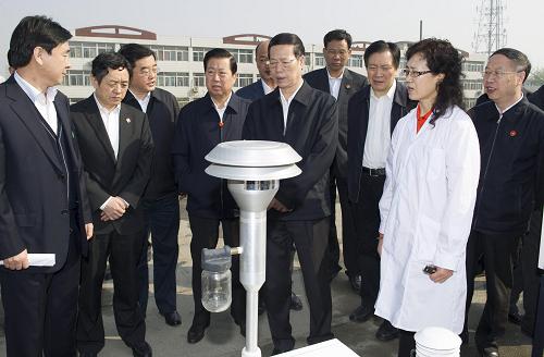这是4月1日,张高丽在保定考察环境保护监测站。新华社记者 黄敬文 摄
