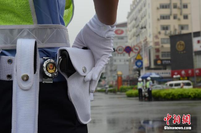 5月16日,广西南宁市公安局交警支队在营区内举行配枪执勤启动仪式,全副武装的执勤交警随后上路执行巡逻任务。据介绍,此举有利于建立和完善更为灵敏的快速反应机制,可在最短时间内集结更为优势的警力参与反恐和处置突发事件的工作。