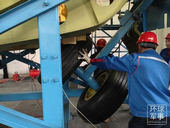 试验人员首先在ARJ21-700飞机轮胎表面制造出一定的破损,用以模拟斜交轮胎破损的模式,然后在主起落架舱内引爆破损轮胎,以验证安装在主起落架舱内的关键设备是否能够承受轮胎爆破所释放的能量冲击。新华社记者 刘济美 摄