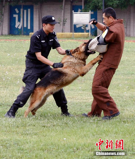 北京650只警犬上街巡逻 指令下“指哪咬哪儿”