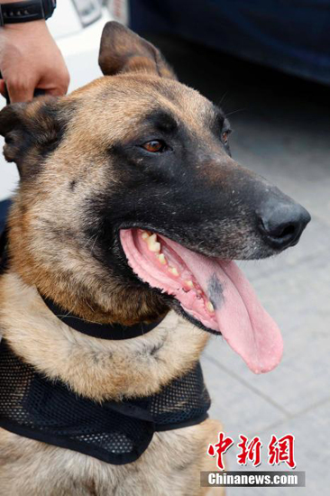 警犬承担着侦查破案、防爆安检、反恐防暴、维稳处突、巡逻堵卡、缉查毒品等任务。中新社发 任海霞摄