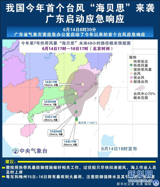 图表:我国今年首个台风“海贝思”来袭广东启动应急响应。新华社记者 肖潇编制