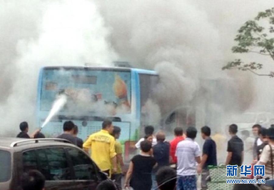 资料图:这是7月5日拍摄的杭州公交车燃烧事故现场(手机拍摄)。新华社发