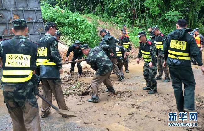 7月21日,边防官兵在云南德宏芒海镇泥石流灾害现场救灾。记者从云南省德宏傣族景颇族自治州公安局获悉,据现场救援人员报告,截至21日16时,当日6时许发生的德宏州芒市芒海镇吕尹村户娜村民小组泥石流已致10人死亡、7人受伤,仍有10人失踪。目前抢险救灾、人员搜救工作正在紧张开展中。新华社发(何冬华摄)