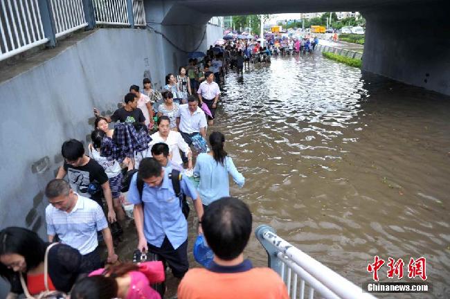 7月23日,今年第10号台风“麦德姆”穿越台湾海峡后,在当天15时30分许在福建福清登陆。“麦德姆”给福建沿海地区带来狂风暴雨,许多广告牌、树木被吹倒,福州市区多处路段积水成灾。王东明 摄