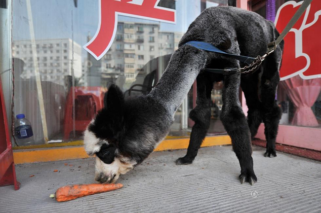 王女士介绍:“两年前在电视上看到这种动物,觉得太好看太可爱了,三个月前通过朋友花了10万元在网上买的。”图为羊驼“黑妞”最喜欢吃的食物是胡萝卜。