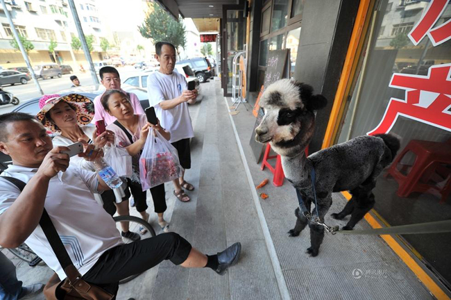 羊驼“黑妞”在路边散步,路人纷纷驻足围观拍照。