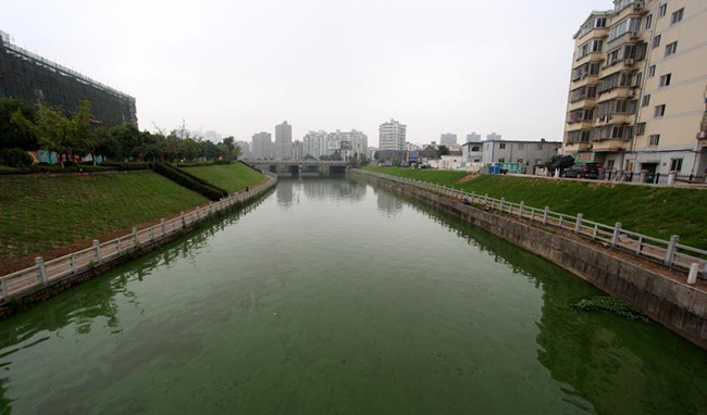 江西九江蓝藻爆发 河水变粘稠“绿漆”