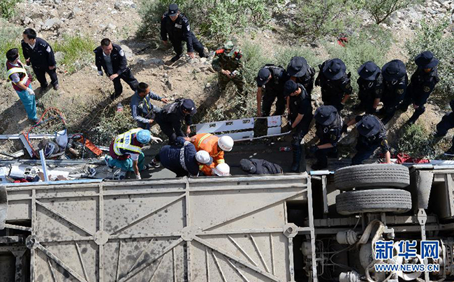 当日下午,西藏自治区尼木县境内318国道4740-4741处发生一起特大交通事故,一辆旅游大巴车与迎面开来的一辆越野车、一辆皮卡货车相撞。三辆车共有55人,经全力抢救无效死亡44人,其余11人受伤,正在全力救治,暂无生命危险。新华社记者 觉果 摄