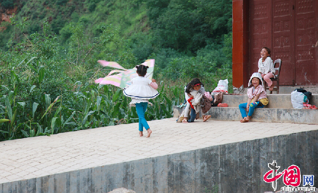 鲁甸县龙头山镇营盘村,孩子们的快乐很简单。 中国网记者 杨佳摄影