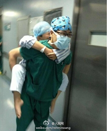 华西医院手术室,突然开始晃动,地震了!麻醉医生立即把病人移到一旁!手术室护士都去安抚自己手术间的病人!随后,他们又组织将病人安全的送回病房!由于病人较多,麻醉医生直接把病人背起送回病房。