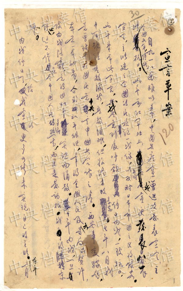 1937年7月15日,中国共产党为公布国共合作宣言1(中央档案馆提供)
