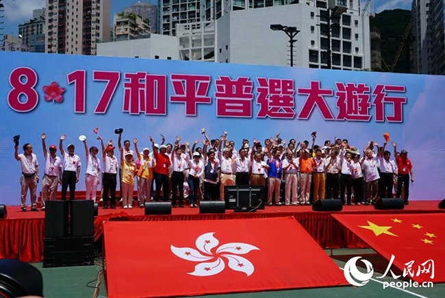 人民网香港8月17日电(郭晓桐 曹海扬),由维多利亚公园游行至中环,目前已经出发。根据记者观察,参与游行人士已经站 满超过五个足球场。