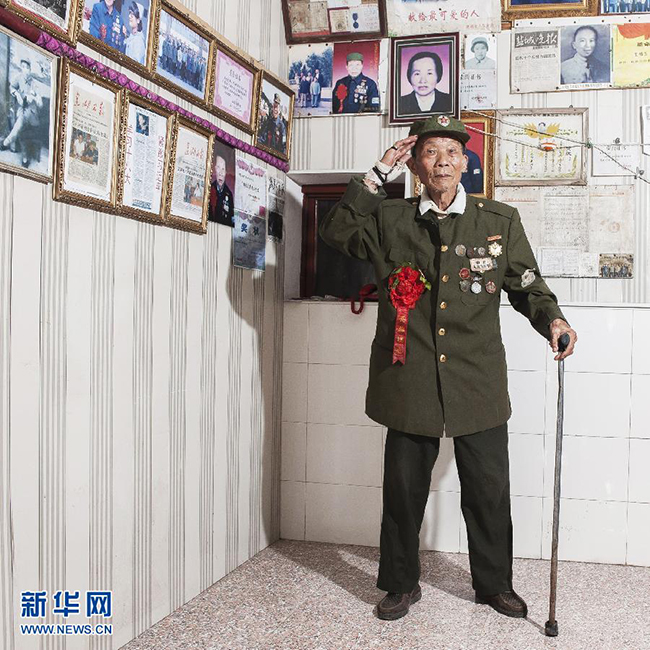 抗战老兵王旭东1941年10月参加新四军投入抗日,从事情报员工作。在抗日战争时期,他参加过王家灶战斗、响水战斗、清江淮城战斗。新中国成立后,他响应号召参加抗美援朝,荣立二等功两次,头部曾被敌机炮弹炸伤。王旭东的父母以及3个兄弟都参加了抗日战争。新华社记者 陈益宸 摄