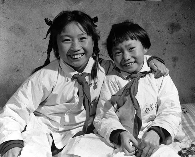 这是龙梅(左)、玉荣小时候的合影(资料照片)。 新华社发