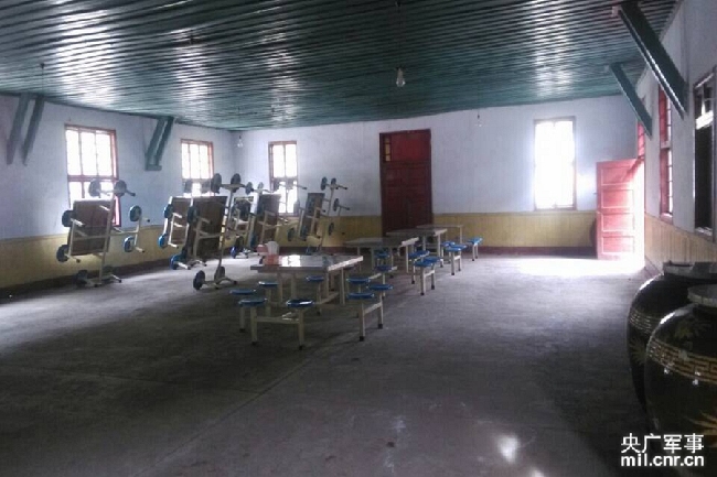 官兵吃饭时候使用的餐桌。刘鹏 摄