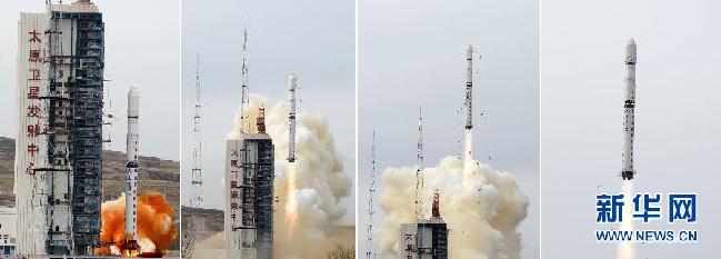 这是长征四号丙运载火箭点火升空的几个瞬间(拼版照片,10月20日摄)。新华社记者 王晓 摄