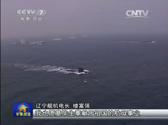 20日,央视新闻节目中播出了中国海军首艘航母辽宁舰最新画面。报道中首次曝光了辽宁舰的轮机舱内的场景,还有辽宁舰与多艘潜艇、水面舰船在海上编队航行的画面。