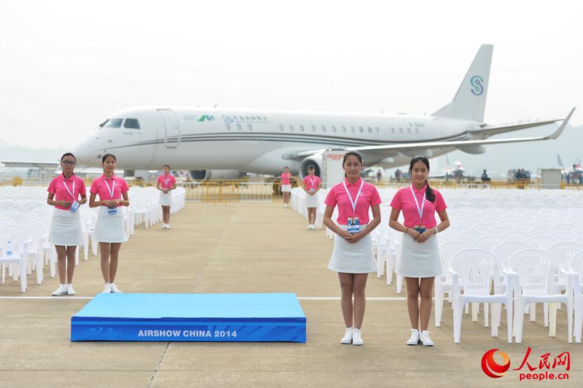 人民网珠海11月10日电 (记者翁奇羽)11月10日上午,珠海航展的志愿者引导员正在进行开幕式彩排。第十届中国国际航空航天博览会将于11日正式开幕。