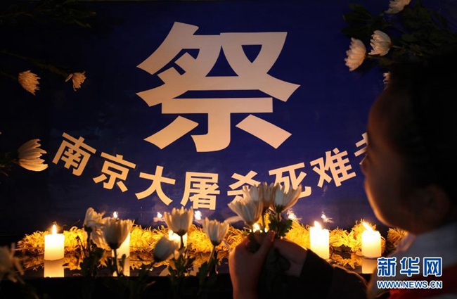 12月11日,枣庄市红旗小学的学生在祭奠南京大屠杀死难者。当日,在12月13日首个“南京大屠杀死难者国家公祭日”到来之际,山东省枣庄市红旗小学举行“勿忘国耻公祭南京大屠杀死难者”主题教育系列活动,邀请民间收藏爱好者杨义平来校展示他收集的侵华日军在南京大屠杀时出版的画报、使用的防毒面具等实物,教育学生时刻铭记历史,勿忘国耻。孙中喆 摄