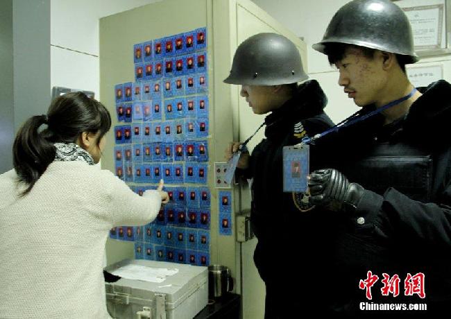 每次进行交接款机都营业员都要进行押运员的身份核实,准确无误后方可交接。 郭建华 摄