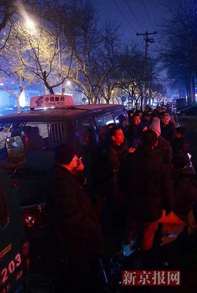 1月4日晚,朝阳区邮票公司外,等候今早8点购买《乙未年》生肖羊邮票的集邮爱好者在打牌消磨时间。为维持秩序,朝阳区邮票公司已在门口拉起一百米左右的警戒线。据悉,中国邮政将于今日发行《乙未年》特种邮票一套一枚,全套邮票面值1.20元,是中国邮政发行的第三轮生肖邮票的收官之作。网络上已经有流传的照片,邮票上的羊以绵羊作为造型基础,羊角装饰有缠枝花草纹,羊身上为牡丹、莲花等花卉图案。文字来源:新京报彭子洋 摄