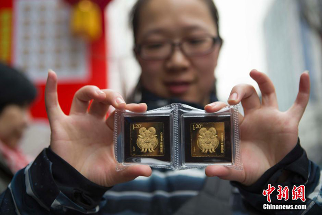羊年生肖邮票黄金版亮相 引市民排队抢购