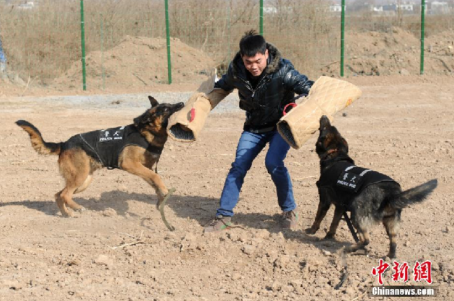西安铁路公安局警犬过障碍钻火圈备战春运