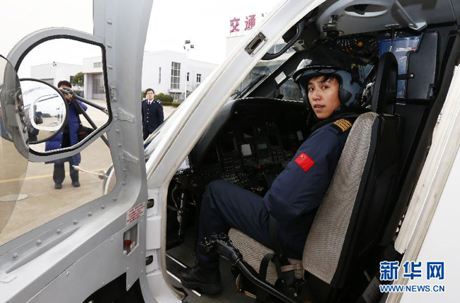 3月5日,女搜救直升机机长宋寅在做起飞准备。