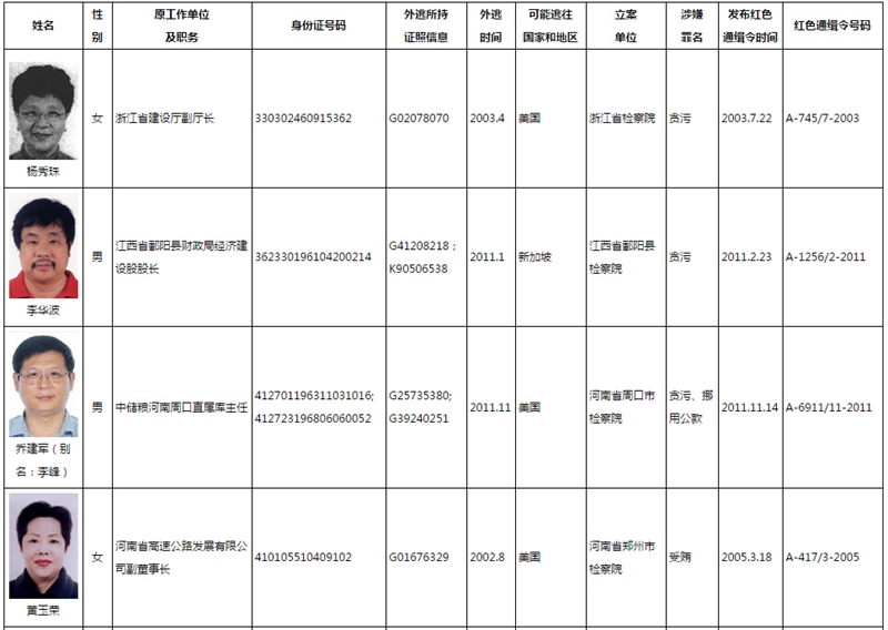 人民网北京4月22日电 据中纪委网站消息,按照“天网”行动统一部署,国际刑警组织中国国家中心局近日集中公布了针对100名涉嫌犯罪的外逃国家工作人员、重要腐败案件涉案人等人员的红色通缉令,加大全球追缉力度。