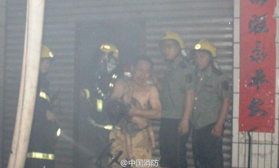 1时13分,在救援过程中,玉林名山消防中队指导员杨科璋抱住一名两岁被困女孩疏散转移时,因现场烟雾较大能见度低,导致踩空坠楼。图为战友从指导员杨科璋怀里抱过小女孩交给其父亲。