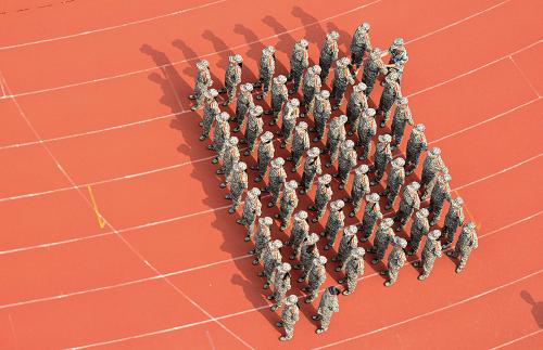 9月21日,湖北省恩施职业技术学院的新生在军训中操练。新学期伊始,各地高校新生陆续开始军训。学生们在训练场上挥洒汗水激情,展示青春活力,磨炼坚强毅力,成为秋日校园里一道别样的风景线。 新华社发(杨顺丕 摄)