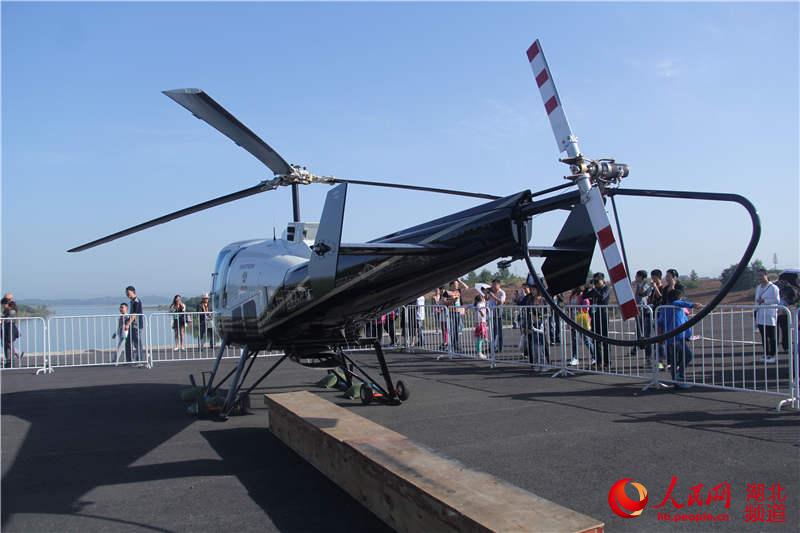 恩斯特龙480B直升机亮相2015荆门爱飞客飞行大会。该品牌直升机广泛运用于空中执法、公务运输、飞行培训等,被喻为直升机中的“超级跑车”。