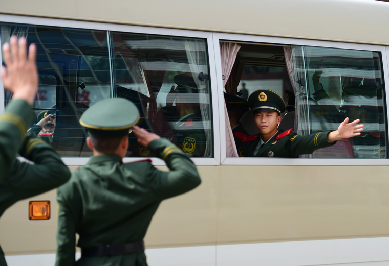 当日,武警广东边防总队近2000多名新兵经过三个月的新兵集训并通过军政考核后,从深圳盐田边防训练基地等地出发,正式下连奔赴粤港澳边海防一线,担负缉私、缉毒等任务。