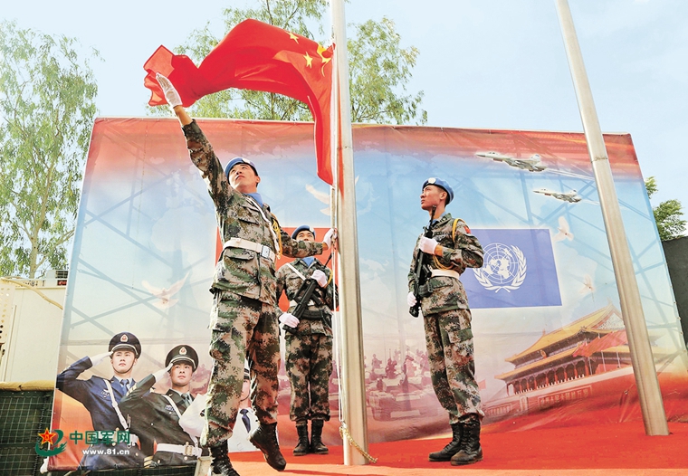 1日,中国第三批赴马里维和部队在维和营地举行升国旗仪式,迎接新年。韩立建 摄