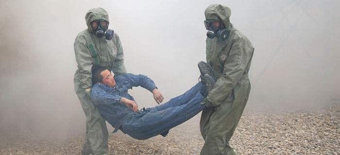 “××化工厂发生泄漏,命你部迅速处置!”3月5日,随着陆军第21集团军某防化团作战值班室的一声令下,百余名官兵立即响应,动若风发,驾驶某新型侦察、洗消、检测装备车辆风驰电掣般驶往事发现场。化工厂烟雾弥漫,炸声四起,工人们四散而逃,危急关头,二连连长武鹏超打破惯例临机决策,命令侦察、救护、堵漏小组兵分三路,同步展开作业。在官兵们的共同努力和各小组的密切配合下,仅用不到30分钟便将“毒魔”有效降服。