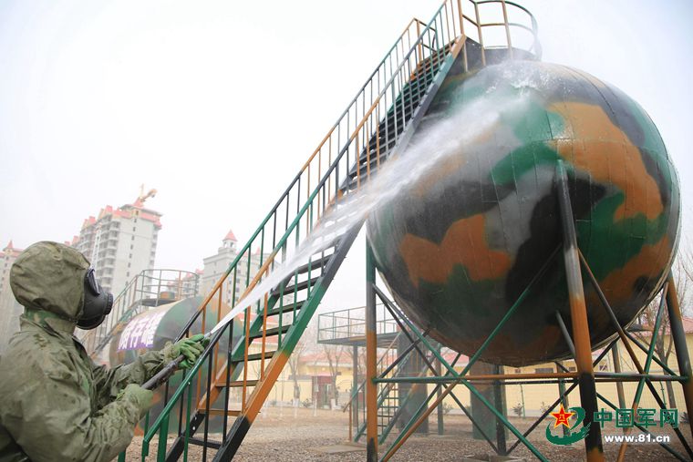 3月6日,陆军第21集团军某防化团应急救援分队对存储罐压制降温。高方录摄