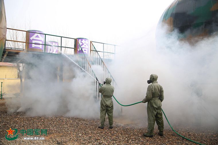 3月6日,陆军第21集团军某防化团对某化工厂合成塔压制降温。高方录摄