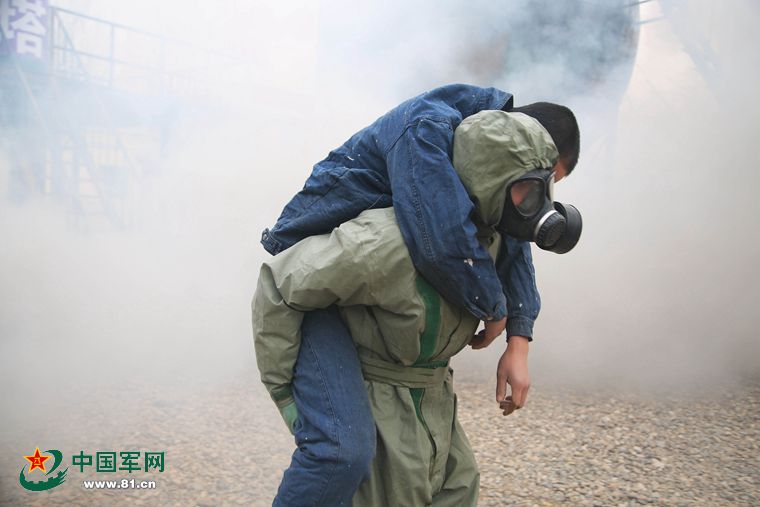 陆军第21集团军某防化团应急演练