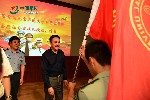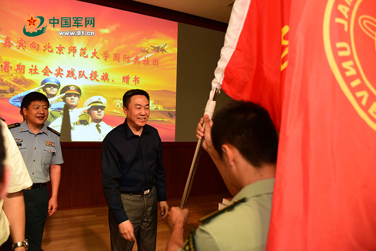领导嘉宾向北京师范大学国防类社团暑期社会实践队授旗、赠书