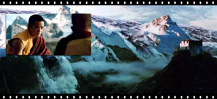 这部电影里镜头里扫描过世界很多著名景点,但令人印象最深刻的还是最后洪水漫过雪山的场景,这个雪山就是中国西南部的喜马拉雅山,那里是人类存留的最终希望。影片中毁于洪水的寺庙真实存在,它就是距离珠穆朗玛峰仅20公里的绒布寺,这里世界海拔最高的寺庙。