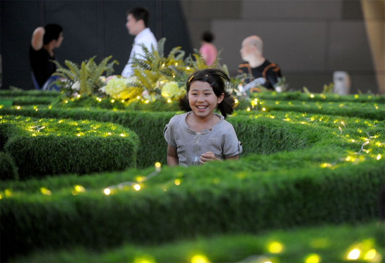 6月5日,一名小女孩在“花园迷宫”里玩耍。