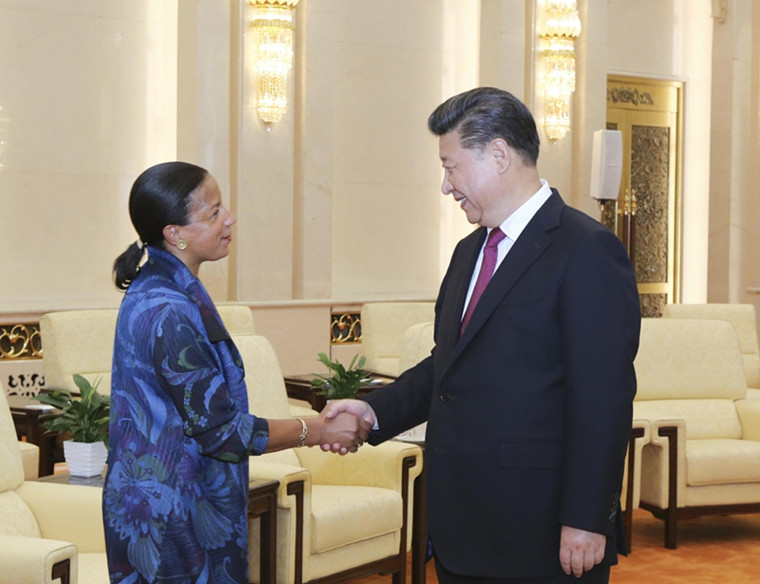 赖斯转达了奥巴马总统对习近平的问候,表示奥巴马总统期待着9月来华出席二十国集团杭州峰会并同习近平主席再次举行会晤。赖斯表示,习近平主席对美中关系的看法同奥巴马总统十分相近。奥巴马总统始终认为,美中关系是当今世界最重要的双边关系。中国的成功符合美国的利益。美中双方携手合作,可以为国际社会应对气候变化等一系列全球性挑战注入活力。美方赞同通过共同努力增进双方互信,加强务实合作并使之成为美中关系的压舱石,愿同中方密切沟通有效管控分歧。