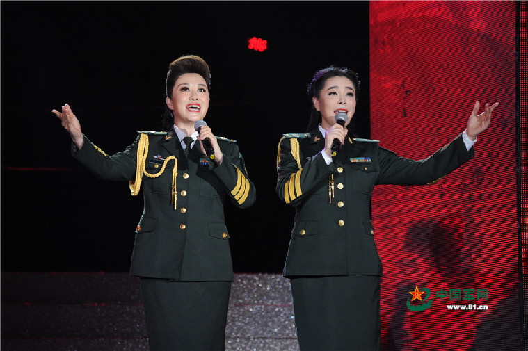 吴娜、钟丽燕演唱歌曲《遵义会议放光芒》。记者王传顺摄影